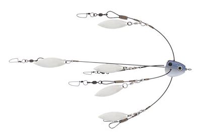 Umbrella rigs are versatile systems that enable you to imitate a school of baitfish. The Bladed Tour Grade Titanium Umbrella Rig is the same as our regular Tour Grade Titanium Umbrella Rig except with heavier (stiffer) wire for more stability and 5 willow leaf blades on ball bearing swivels to add flash and attract fish. The titanium wire enables increased pulsing action of the lures for better action and more strikes.