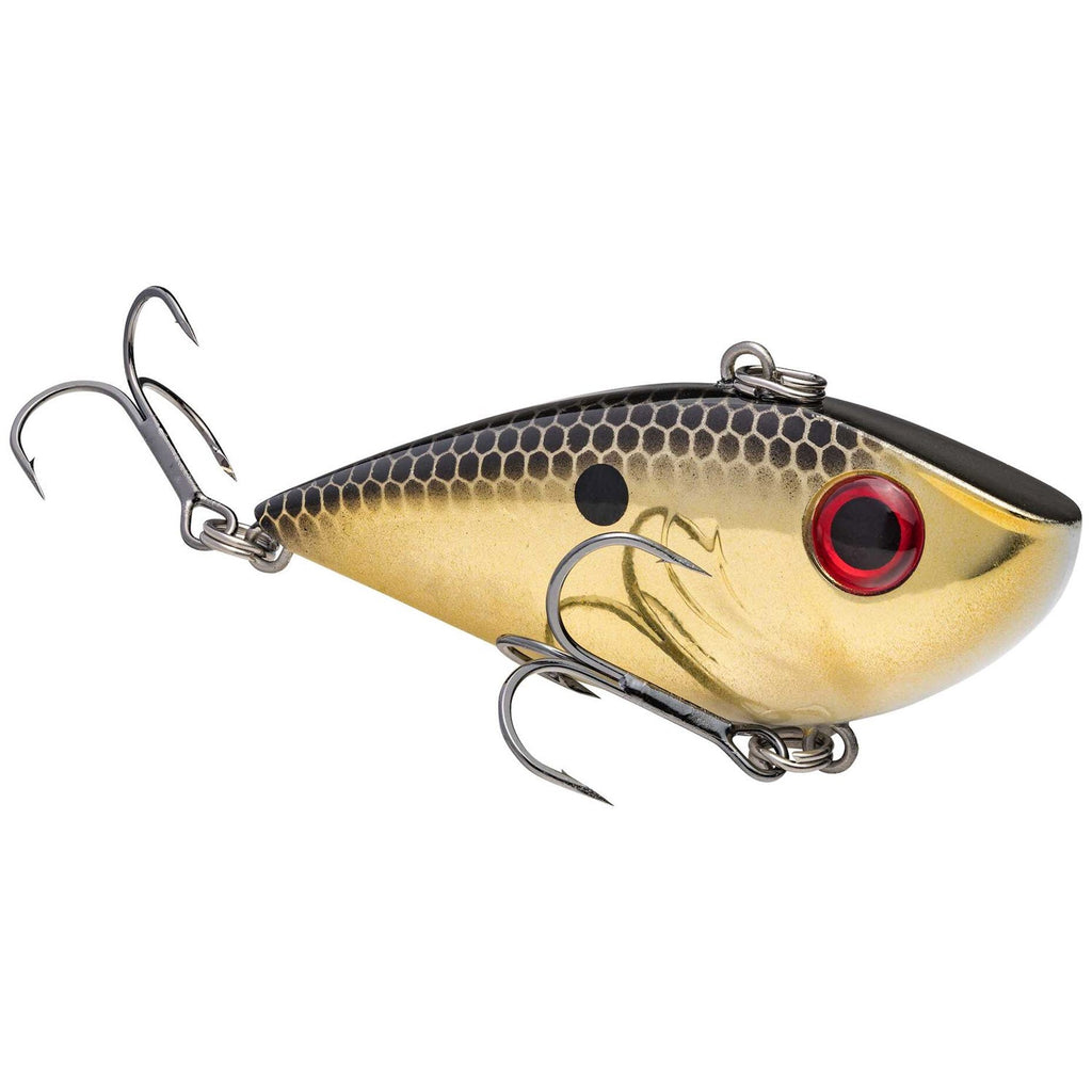 The unique shad-style body of the Strike King Red Eyed Shad Tungsten 2 Tap 1/2 oz Lipless Crankbait provides excellent action and sound in the water. The 3-D eyes and paint scheme offer a lifelike appearance, and the single tungsten rattle provides a unique one knocker sound. Ideal for attracting bass in freshwater fishing applications in clear or pressured water. Two No. 4 treble hooks.