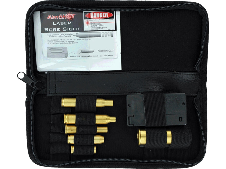 KT-Rifle AimSHOT Rifle Bore Sight kit- This kit includes the external battery pack red laser bore sight along with our top 6 selling rifle arbors. You will be able to bore sight most major calibers with this kit. Aimshot Boresight Kits - Bsb22320X W/Top 6 Arbors - KT-RIFLE.