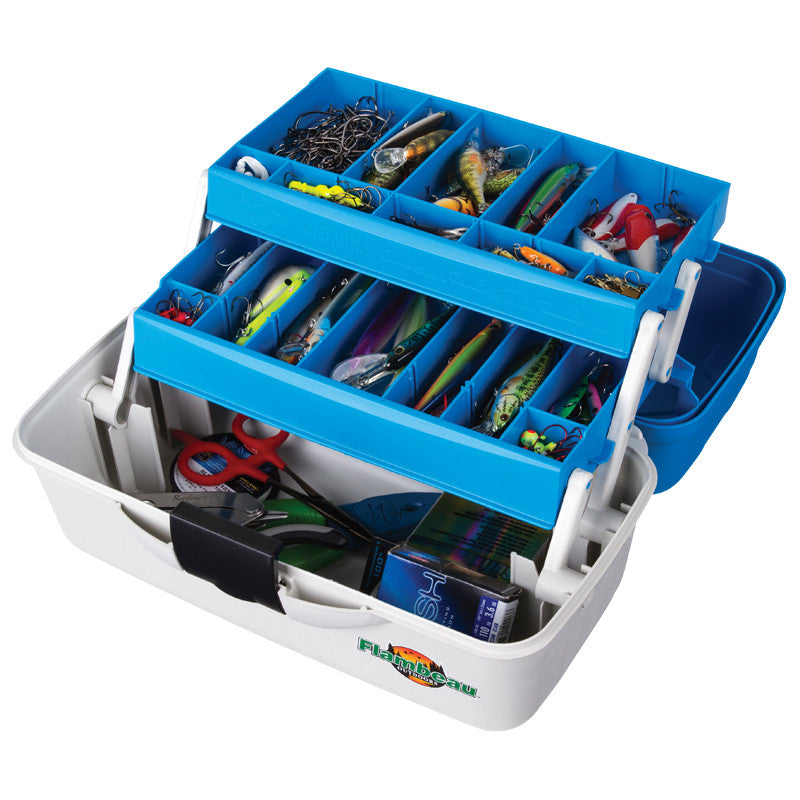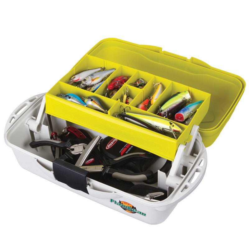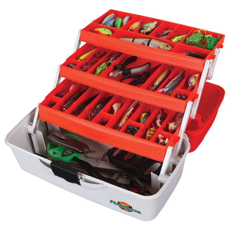 The Flambeau Tray Classic features a "drawtite" latch, tip-guard tray supports and all-weather, worm-proof materials. The tongue-and-groove construction between the lid and base makes the tray water resistant. Flambeau 3-Tray Classic TPlastic Draw tite latch Water resistant and worm-proof Flambeau tackle box features 37 compartments Dimensions: Features a Draw tite latch, Tip-Guard tray supports and all-weather, worm-proof materials. Tongue and- groove construction between lid and base yields water-resistant design and precision fit. Includes removable dividers for enhanced storage capabilities. Up to 37 compartments. Varied tray depth for greater capacity options. Manufactured using recycled materials. Size: 15.50 x 8.75 x 8.25 inches.