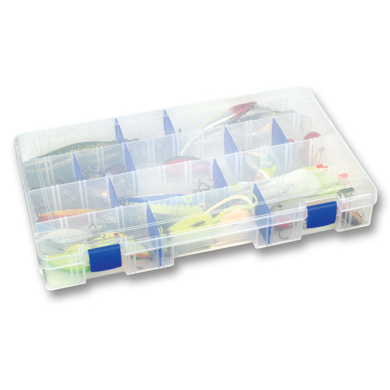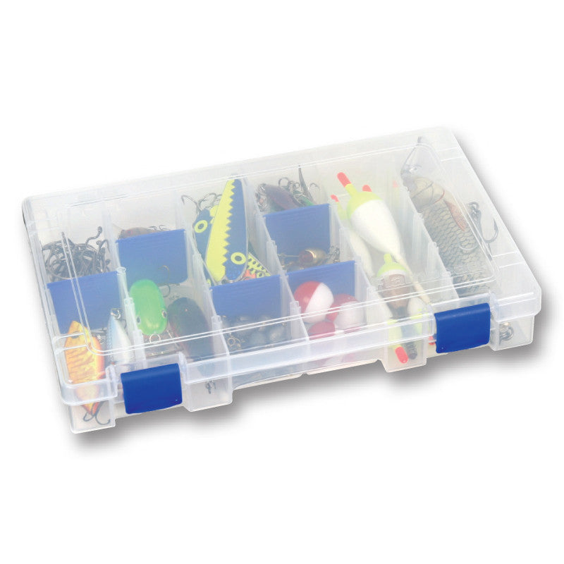 Flambeau Tuff Tainer Fishing Tackle Box . This tackle storage box with Zerust protects your tackle equipment against corrosion. This Flambeau Tackle Box includes six partitions to keep your bait and equipment organized. The dividers are also made with Zerust, which works by emitting an fills the inside of the tackle box to provide a protective layer over Flambeau Tuff Tainer Tackle Box with Zerus.
