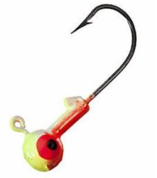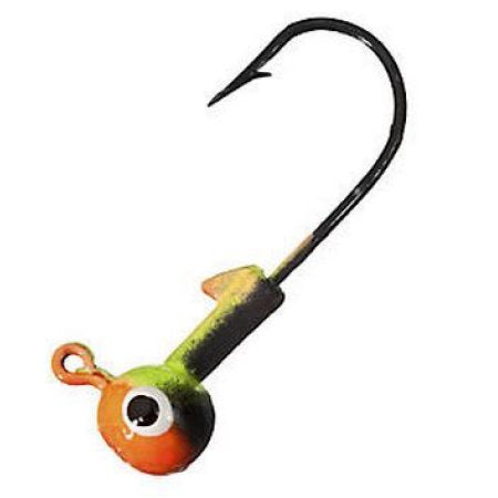 Features: Eagle Claw Needle Point Black. Nickel Hook. Round head. Plastic keeper. barb. Appealing, tri-color paint schemes. Lifelike ''bite-me'' baitfish eyes. 1/16Oz and 10 Per Pack.