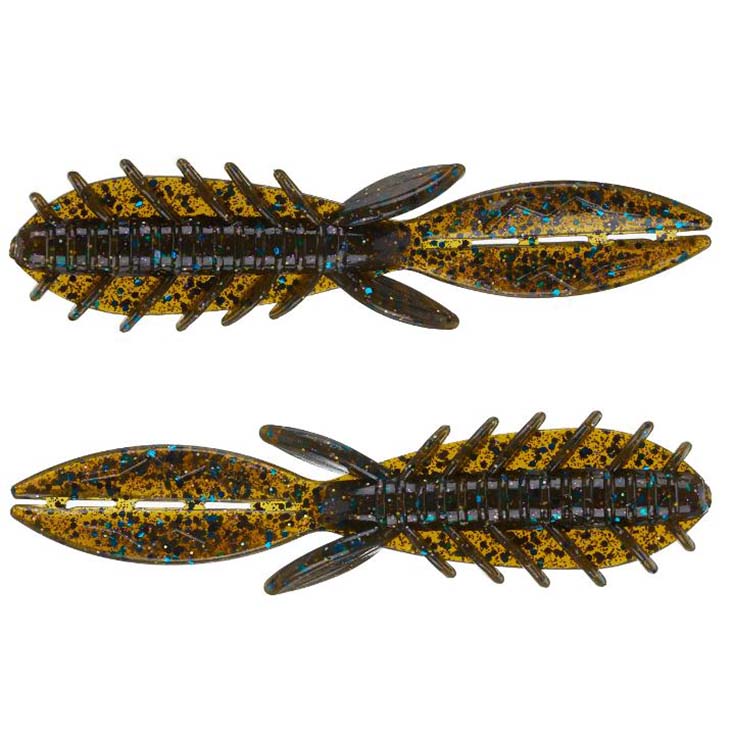 Featuring an innovative flex-wing design, the Netbait Dagger Creature Bait is an enticing new option to fling into the thickest cover your water has to offer. Perfect for punching through matts, stick-ups, or any other cover you come across, it relies on a compact body core to easily accommodate a large Texas-rig flippin’ hook while its thin, collapsible wing design compresses quickly to improve hook penetration. In addition to aiding in its ability to slip into tight cover efficiently, the flex-wing also integrates forward-facing angled ribs into the design to improve water displacement and promote a natural swimming action that fish simply can’t resist.