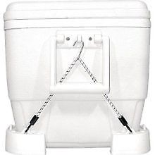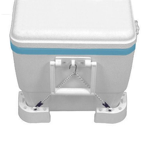 The Cooler Mounting Kit includes four corner brackets and two hold down straps. This kit will prevent cooler from moving around on the deck. The molded, UV resistant corner brackets have interior screw mounting holes to allow a flush mount against surfaces and to take up less deck space. The nylon bungee straps feature molded hooks and a stainless center hook for totally corrosion-proof mounting. Fits virtually all sizes and makes of coolers including Igloo. Straps provide secure mounting and are easy to disconnect. Includes mounting screws.A universal, innovative quick disconnect strap design that mounts a cooler easily with straps in a compact corner design. Prevents injury and boat or cooler damage. Totally corrosion proof. Display packed.