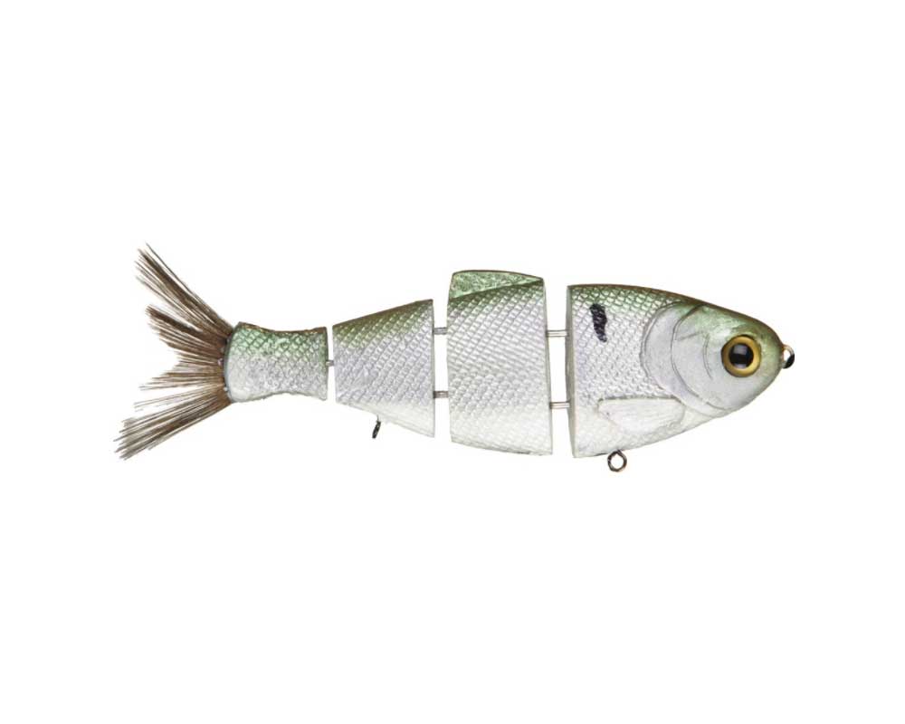 Handcrafted in Georgia, the slow sinking Bull Shad Swimbaits are intended to mimic species of shad that bass feed upon all over the country. The Bull Shad possesses the profile of large shad that naturally become meals for some of the largest bass around the country, especially in bodies of water void of trout or hitch. The Bull Shad is not a highly refined, exquisitely detailed, finely finished bait that will swim out of its packaging to wow you with its realism. In fact, while the Bull Shad is quite the contrary it is exquisite in its own right. Instead of a super realistic imitation of a super clean and healthy baitfish, the Bull Shad resembles a beat up, harried, surviving by the ligament of its scales baitfish that’s led a hard life to get where it is today – tied to the end of your line waiting to be devoured.